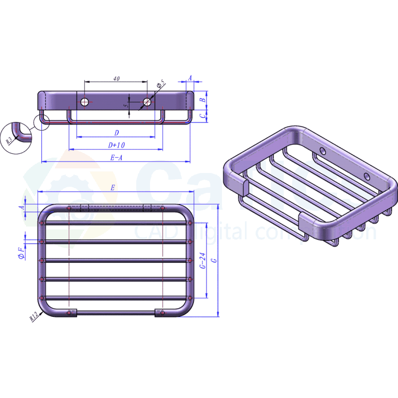 参照图构建立体模型,注意其中的对称、相切、阵列等几何关系。