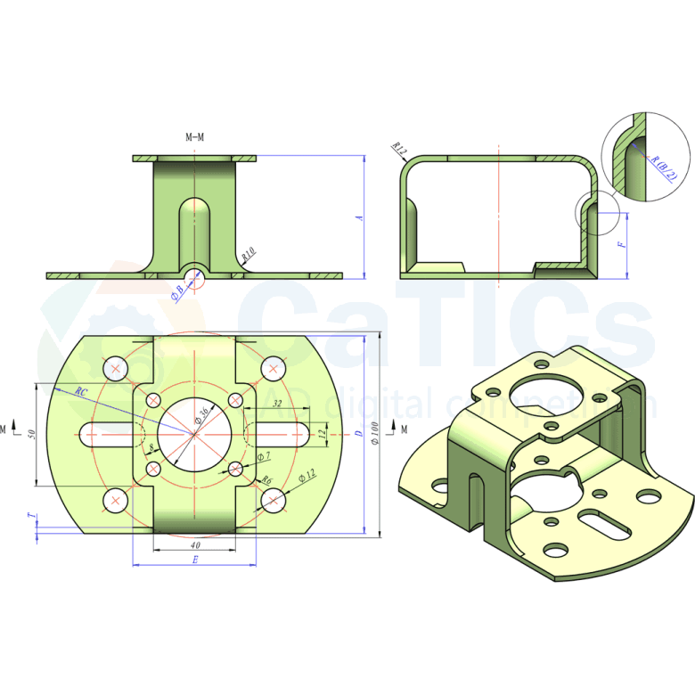 参照图构建立体模型,注意模型中壁厚处处相等。