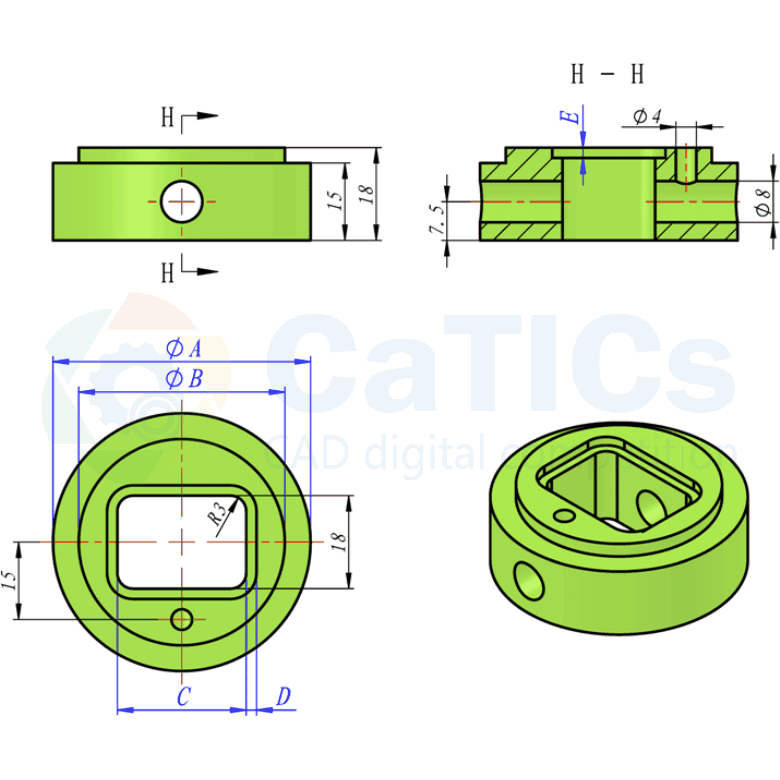 题目:参照图构建三维模型,注意其中的对称、同心等几何关系.