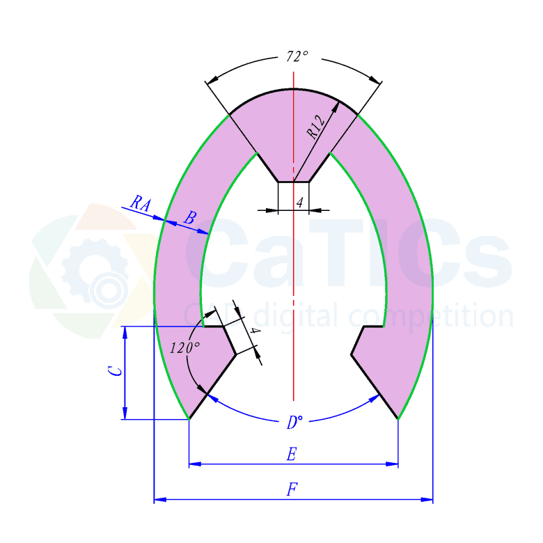 参照图绘制轮廓,注意其中的水平、对称、中点、相切等几何关系。其中绿色线条为等距关系。