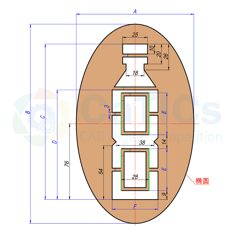 请参照图绘制图形,注意其中的平行、对称、共线、垂直等几何关系。其中同色线条的长度相等。