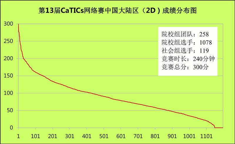 第13届CaTICs网络赛2D成绩分布图: