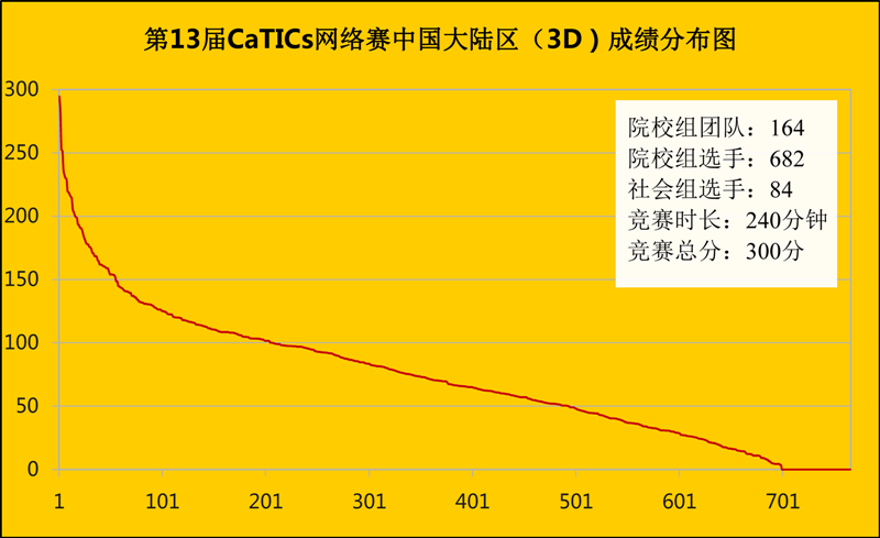 第13届CaTICs网络赛3D成绩分布图: