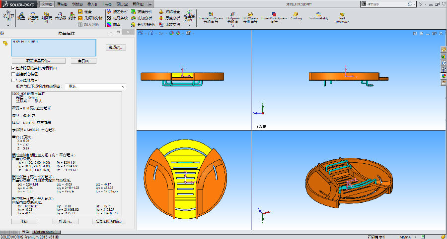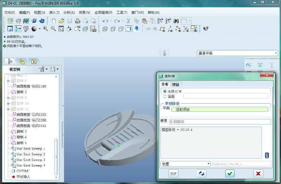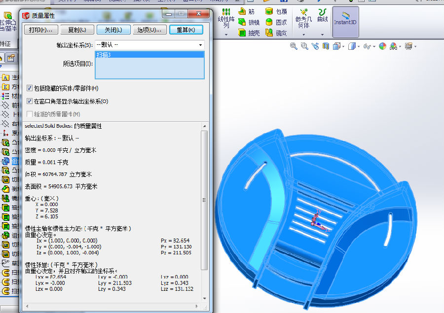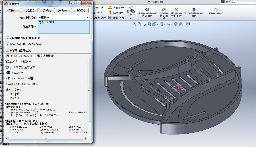 3、 前一个结果细查后有错,模型体积是 60809.247949110 mm^3 。