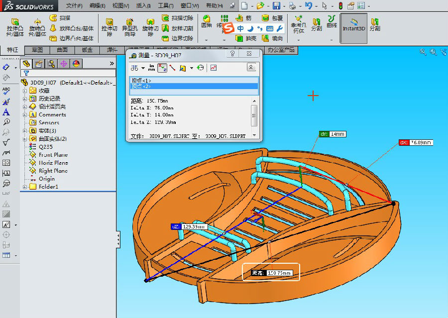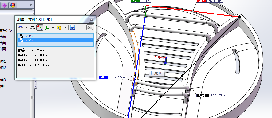1、 P1到P2之间的距离是 150.6645mm