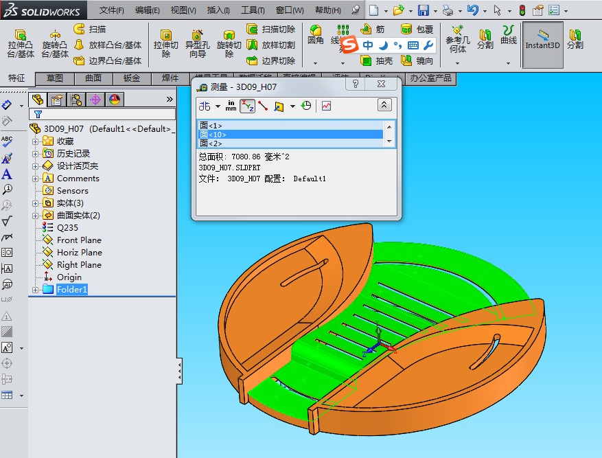 2、黄色区域(共10块)的面积是7054.92平方毫米